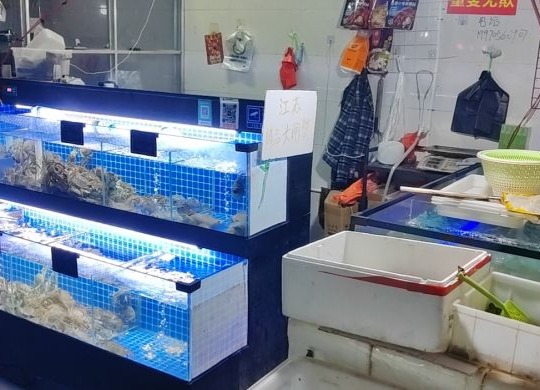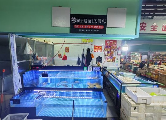 菜市场里 盈利海鲜摊位旺铺转让